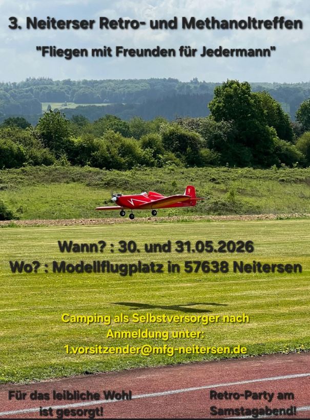 30. – 31. Mai – 3. Neiterser Retro- und Methanoltreffen auf dem Modellflugplatz 57638 Neitersen